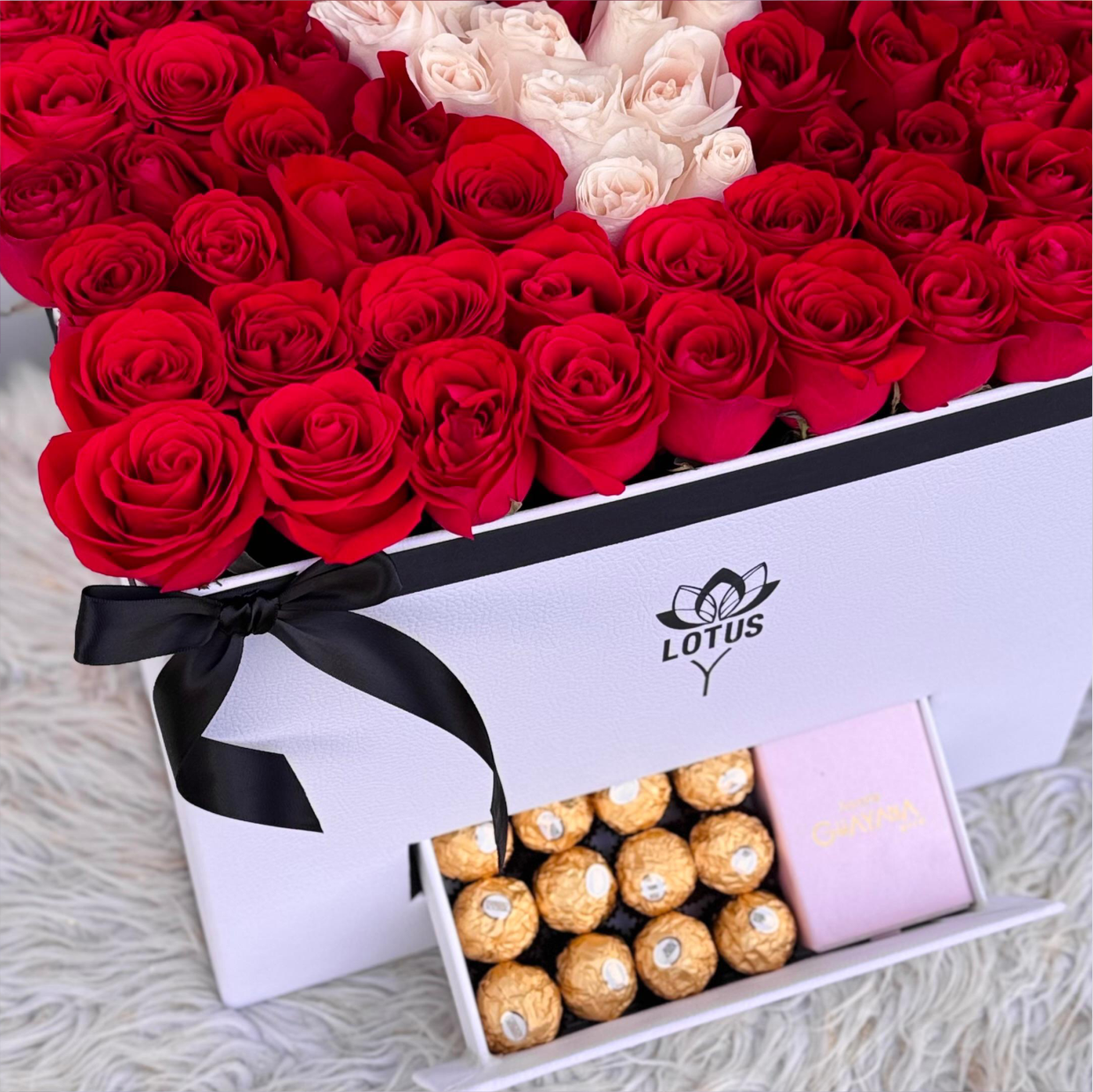 Su compartimiento de dulces complementa la experiencia con un toque de ternura y sabor, haciendo de este detalle el regalo perfecto para aniversarios, propuestas, celebraciones importantes o fechas románticas.