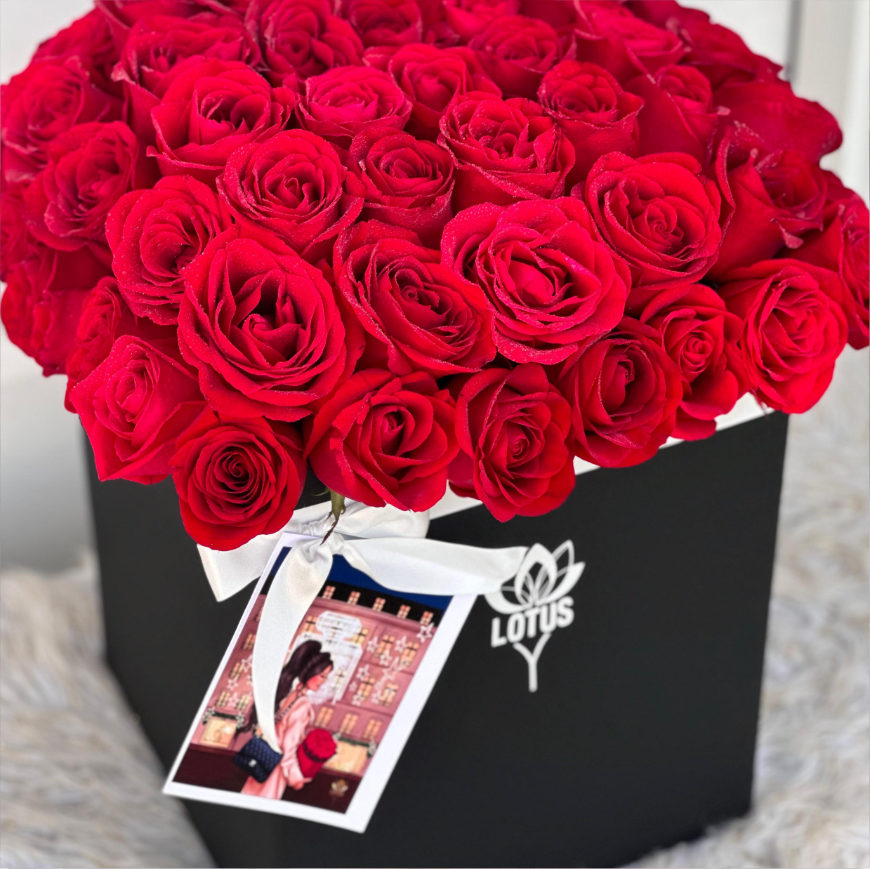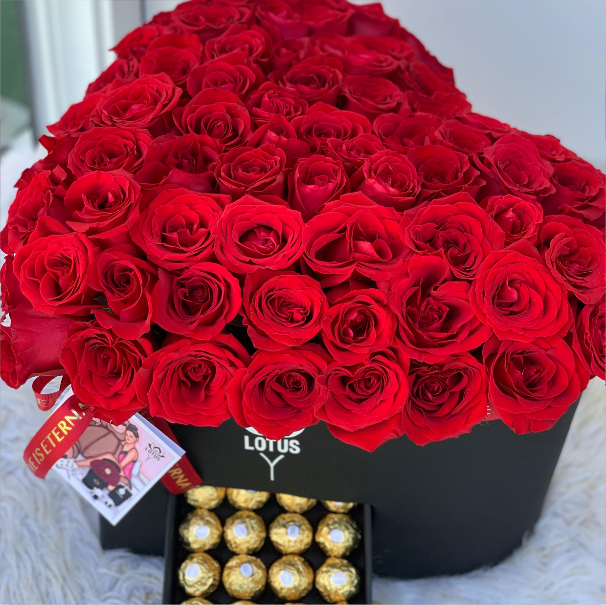 Un regalo majestuoso que combina belleza, dulzura y elegancia. Nuestra Caja de 80 Rosas —disponible en forma cuadrada, redonda o corazón— deslumbra con una impresionante cantidad de rosas frescas, cuidadosamente dispuestas para crear un impacto visual inolvidable.