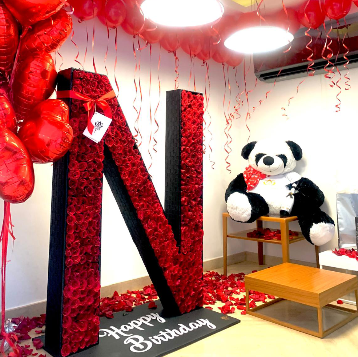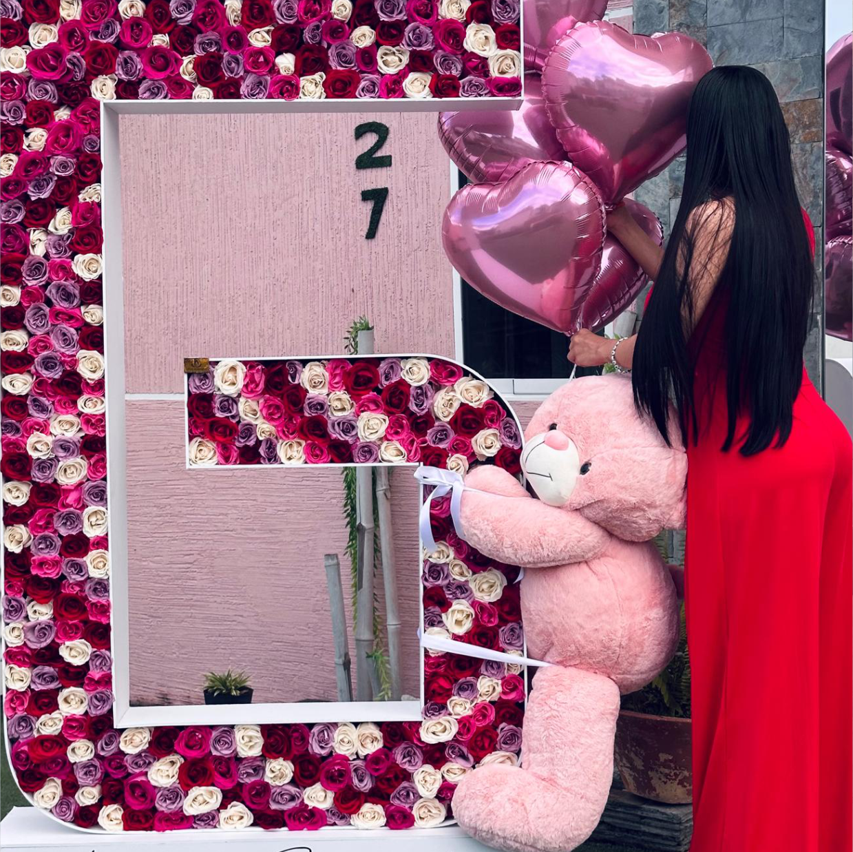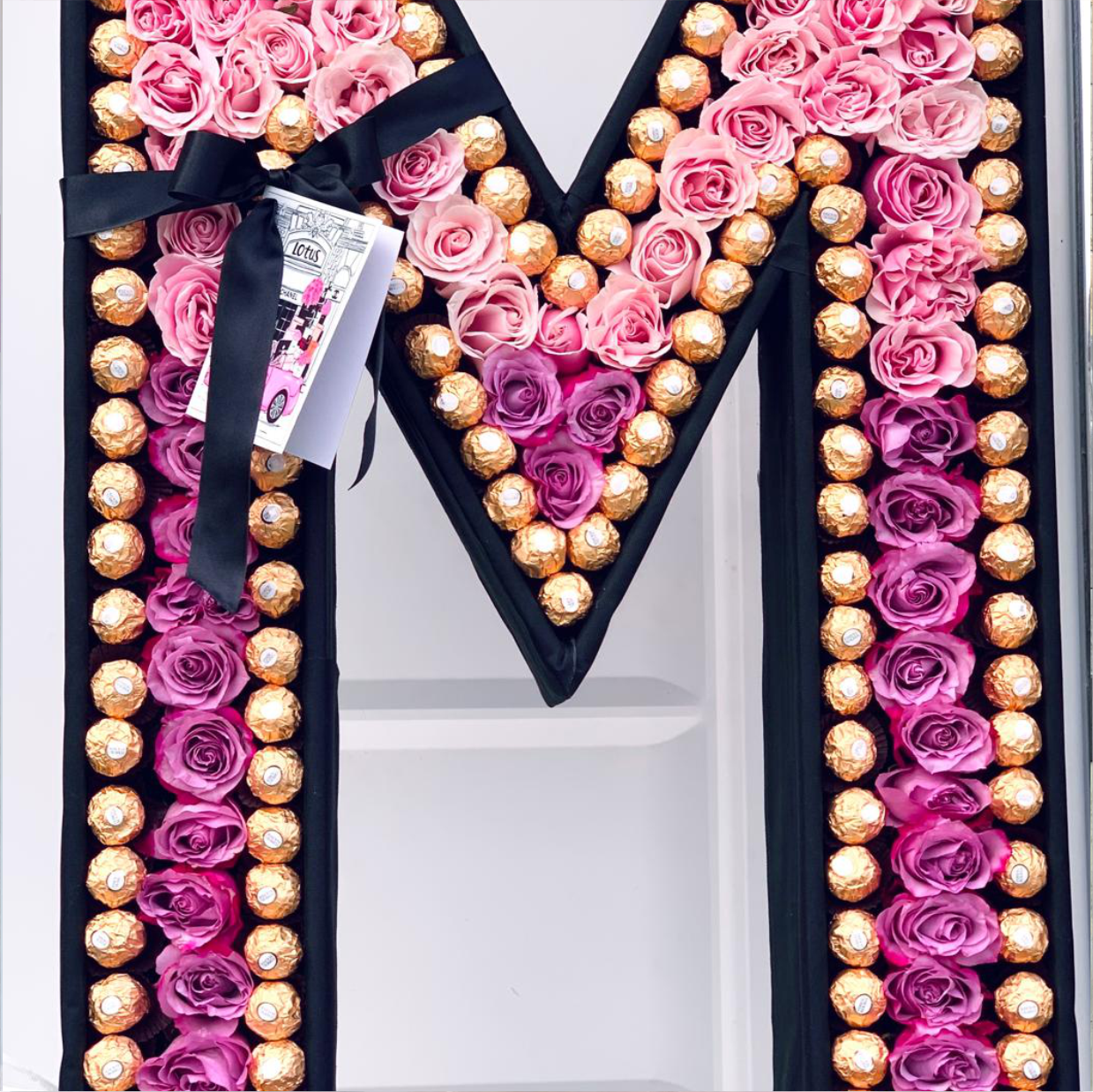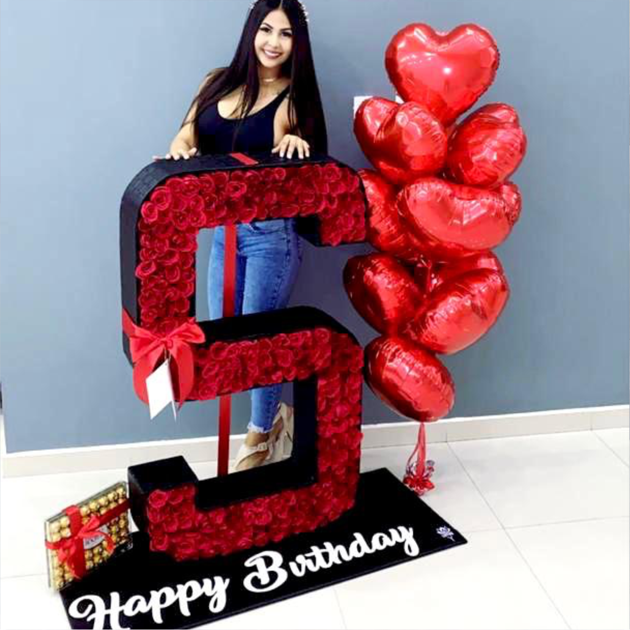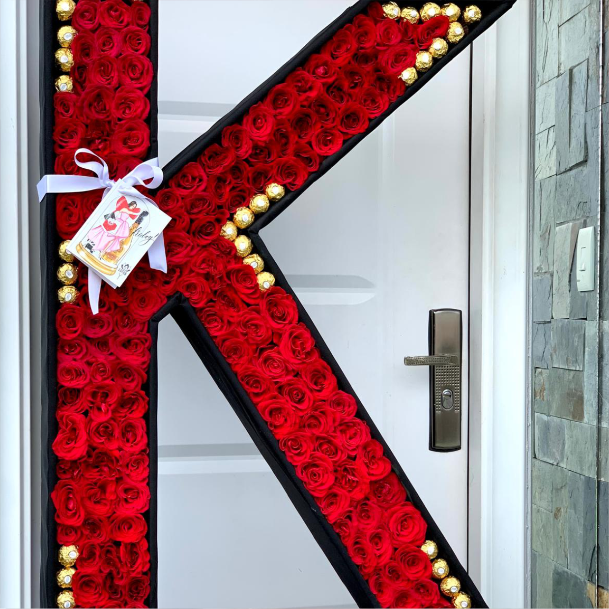 Crea un regalo impactante y memorable con nuestras letras de rosas de 1.40 metros, cuidadosamente elaboradas con rosas frescas y montadas sobre una base personalizada. Cada arreglo incluye deliciosos chocolates Ferrero Rocher y 5 globos de helio, creando un detalle elegante, romántico y festivo.